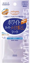 ソフティモ ホワイト スーパーメイク落としシート 携帯用 (12枚入) 【15dw12】価格: 228円レビュー評価: 0.0 レビュー数:0 名 称ソフティモ ホワイト スーパーメイク落としシート 【携帯用/12枚入】 内容量 12枚入(内容量40mL) 特 徴 ★美容成分inで美肌ケア 透明感のある素肌に。 残存メラニンも含んだ古い角質を落とす。 ◎角質クリア成分・ハトムギエキス(保湿) 配合 ■大きめサイズ ■厚めのふんわりシート:超極細ファイバー使用 ■無香料・無着色 ◆バッチリメイクもサッとふき取る! ベタつかずスッキリ! スゴ落ち!新開発シート採用! ◎超極細ファイバー使用 クイッククリアシート ・スルッとなめらか やさしい肌あたり ・落としたメイクを内部にキャッチ ・クレンジング液がジュワ? ◆シートにたっぷり含まれた |