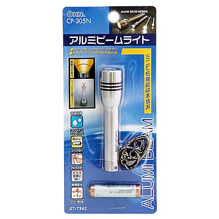 ★今、計5千円以上で送料無料!★アウトドアでも安心な防滴仕様!アルミビームライト CP-305N価格: 676円レビュー評価: 0.0 レビュー数:0 この商品の出荷予定日は4-7日(営業日)【特長】本体は軽くて衝撃に強いアルミ合金製です。クリプトン球だから従来品と比べて明るさが違います。防滴タイプですから小雨の中でも使用できます。バックの中などに入れてもかさばらないミニサイズです。【製品仕様】 使用電池:単4形乾電池1本(付属)使用電球:1.2V/0.5Aクリプトンミニチュア球 連続使用時間:マンガン乾電池(黒)使用時:約1時間 アルカリ乾電池使用時:約1時間40分外形寸法:(最大径)20×(長さ)86mm質量:約35g(乾電池別)スペアー球付属【注意】※本品は完全防水ではありません、水中での使用はおやめください。【製品仕様】 |
